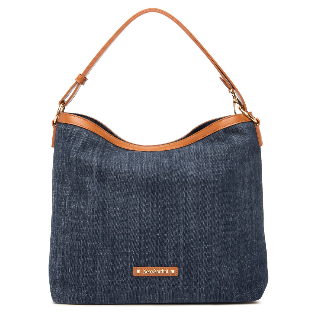 Borsa a spalla in Jeans/Cuoio NeroGiardini