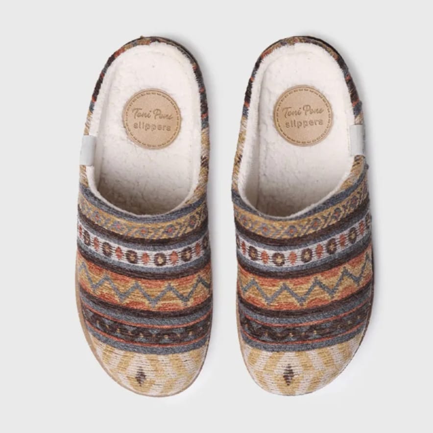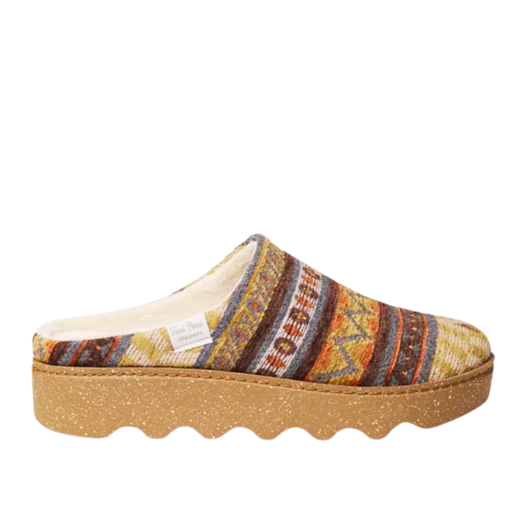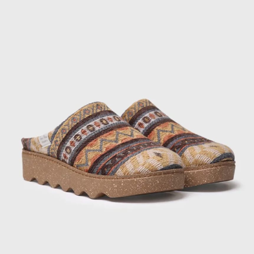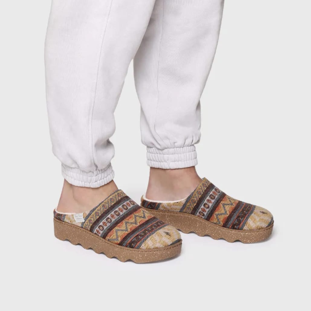 Ciabatta da donna in tessuto con affascinanti motivi etnici, ideale per chi ricerca comfort senza compromessi. La soletta interna rivestita in morbido tessuto garantisce calore avvolgente durante le giornate fredde. La suola a platform alta 3,5 cm, offre stabilità e un'elegante elevazione, rendendola versatile sia per l'uso domestico che per uscite casual. Questo modello calza la misura standard, se hai una taglia intermedia, ti consigliamo di scegliere quella più piccola.