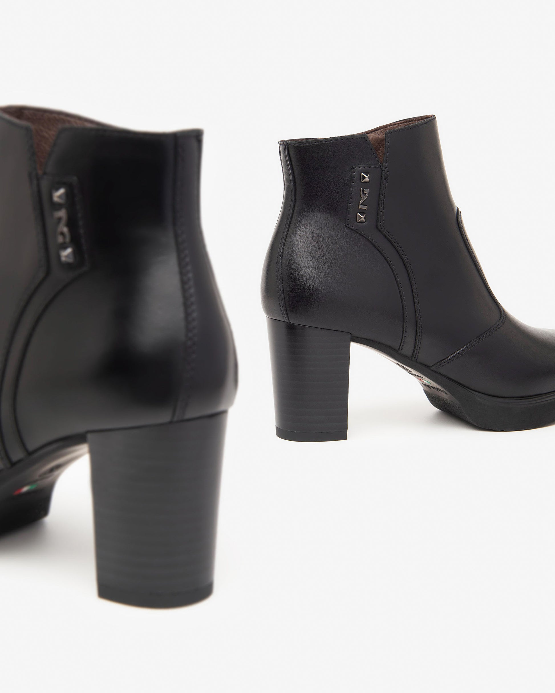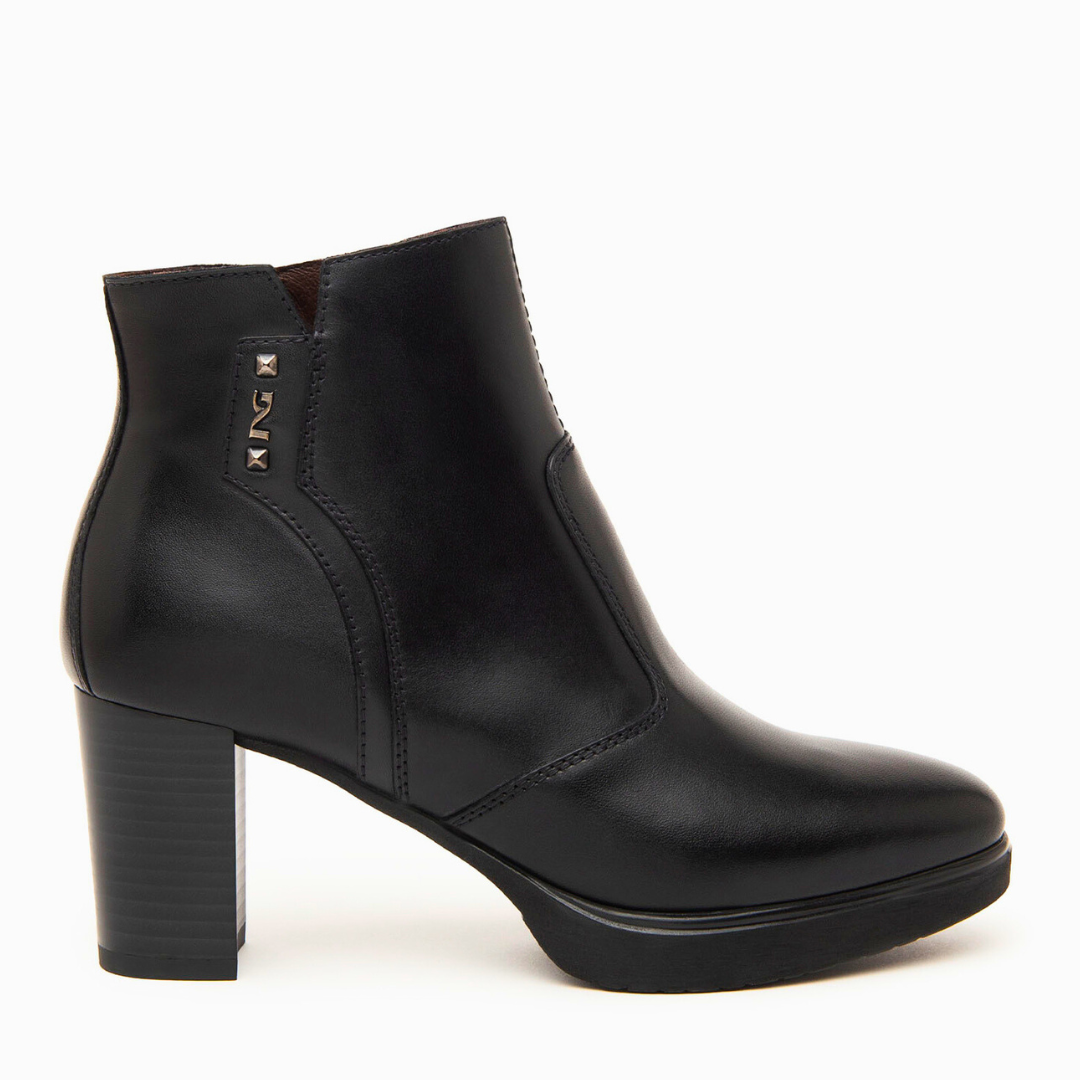 Stivaletto Nero in morbidissima pelle impreziosito sottile cinturino con fibbia logata. Chiusura con Zip sul lato interno per facilitare la calzata. Fodera e sottopiede in pelle. Fondo in gomma antiscivolo con tacco a blocco di 7 cm e plateau di 1,8 cm. Calzata comoda. Made in Italy